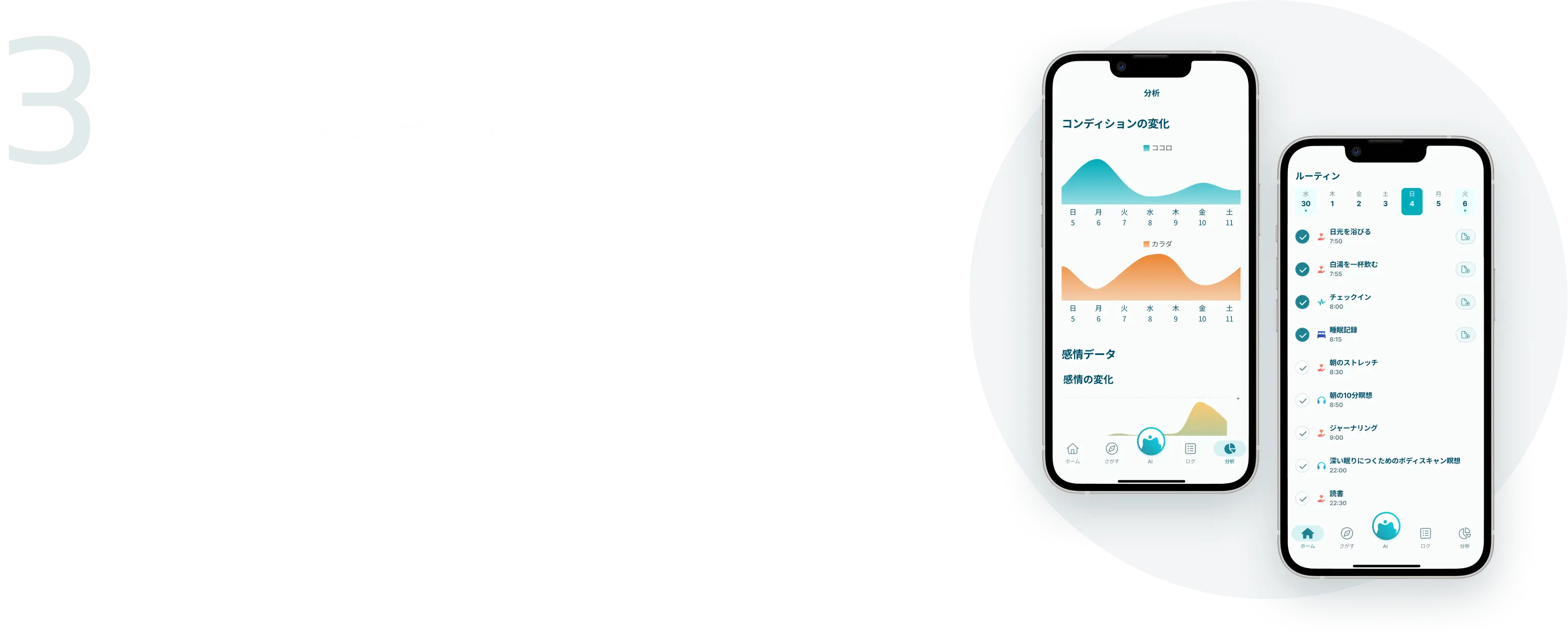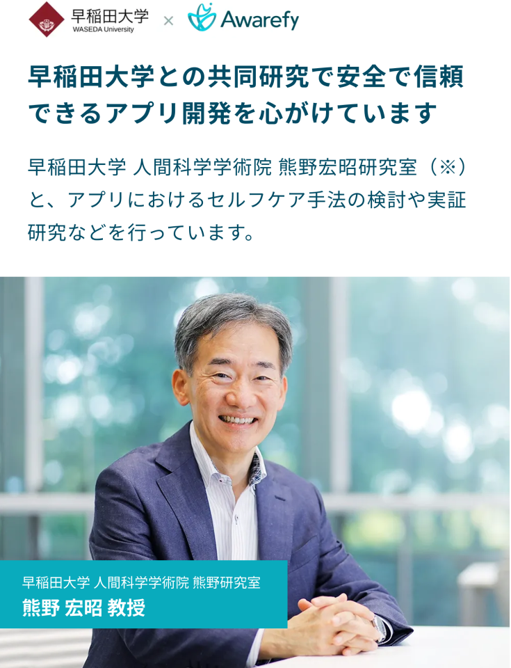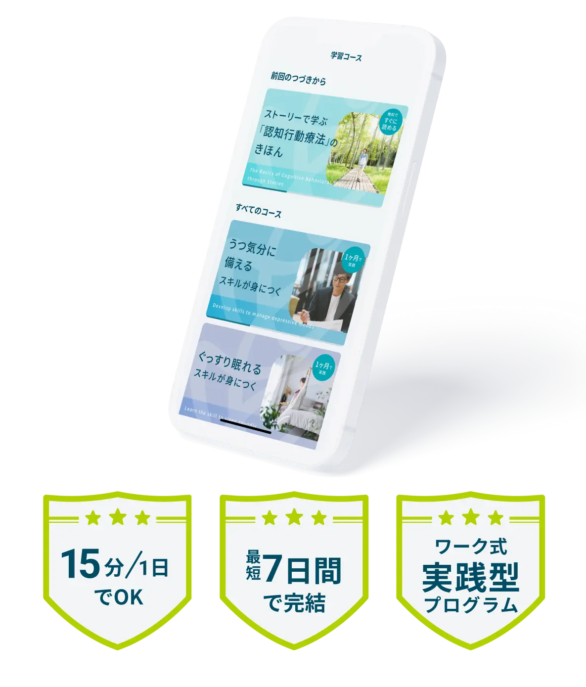 アプリは健康な人のメンタルヘルス維持のためにご利用いただくことを目的として作られています。あくまでセルフケアの用途でお使いいただくアプリのため、治療に代わるものではありません。治療中の疾患がある方は、主治医にご相談の上でご利用ください。