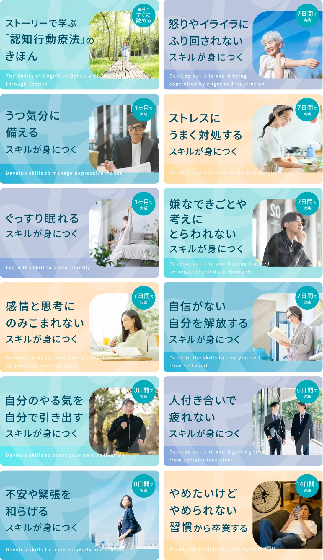 全く知識がない方へ向けてアプリ開発を行なっているので、ご安心ください。ゼロからでも心理学の知識を学び、心をケアするスキルが身につけられるようになっています。
