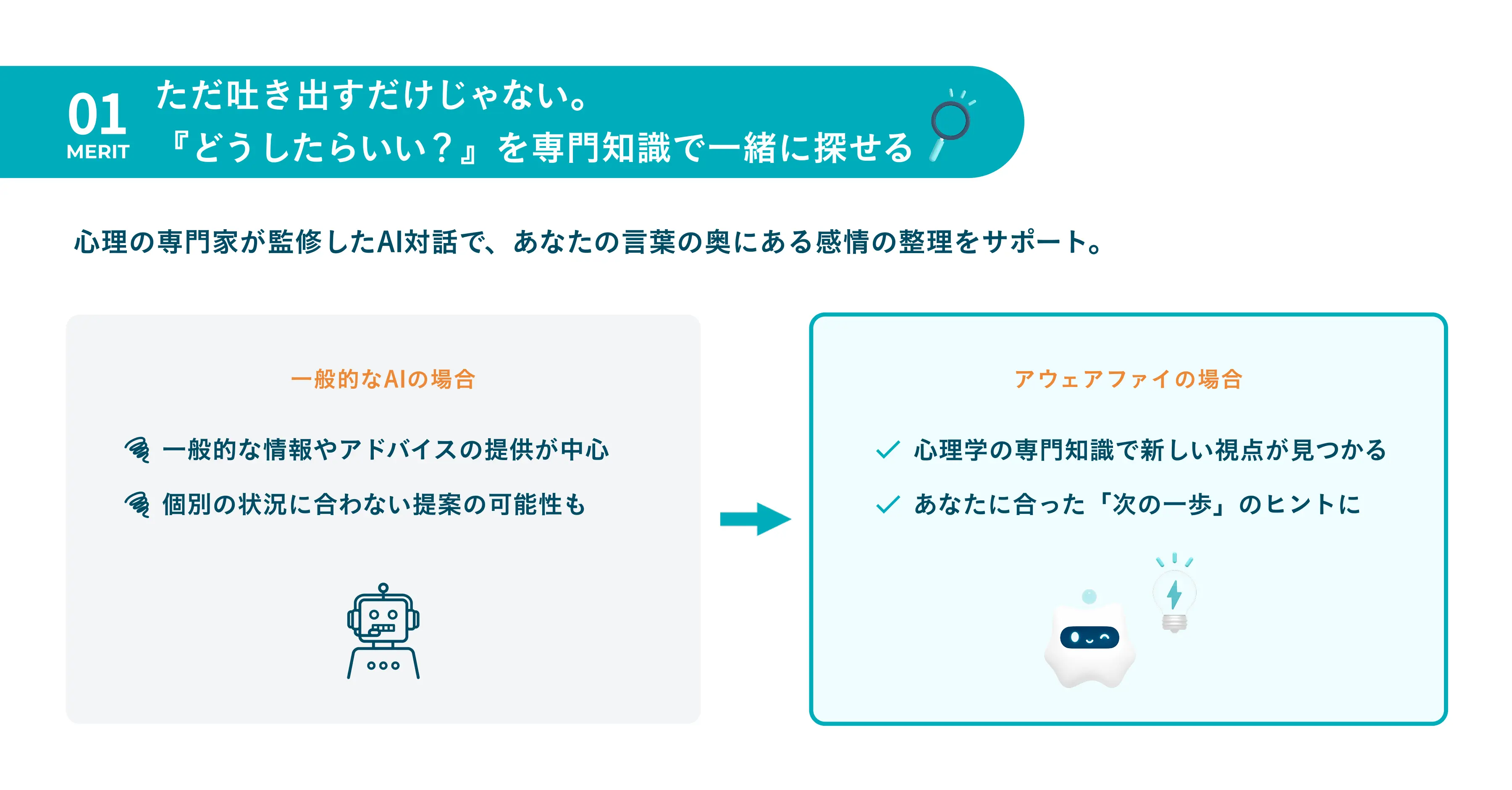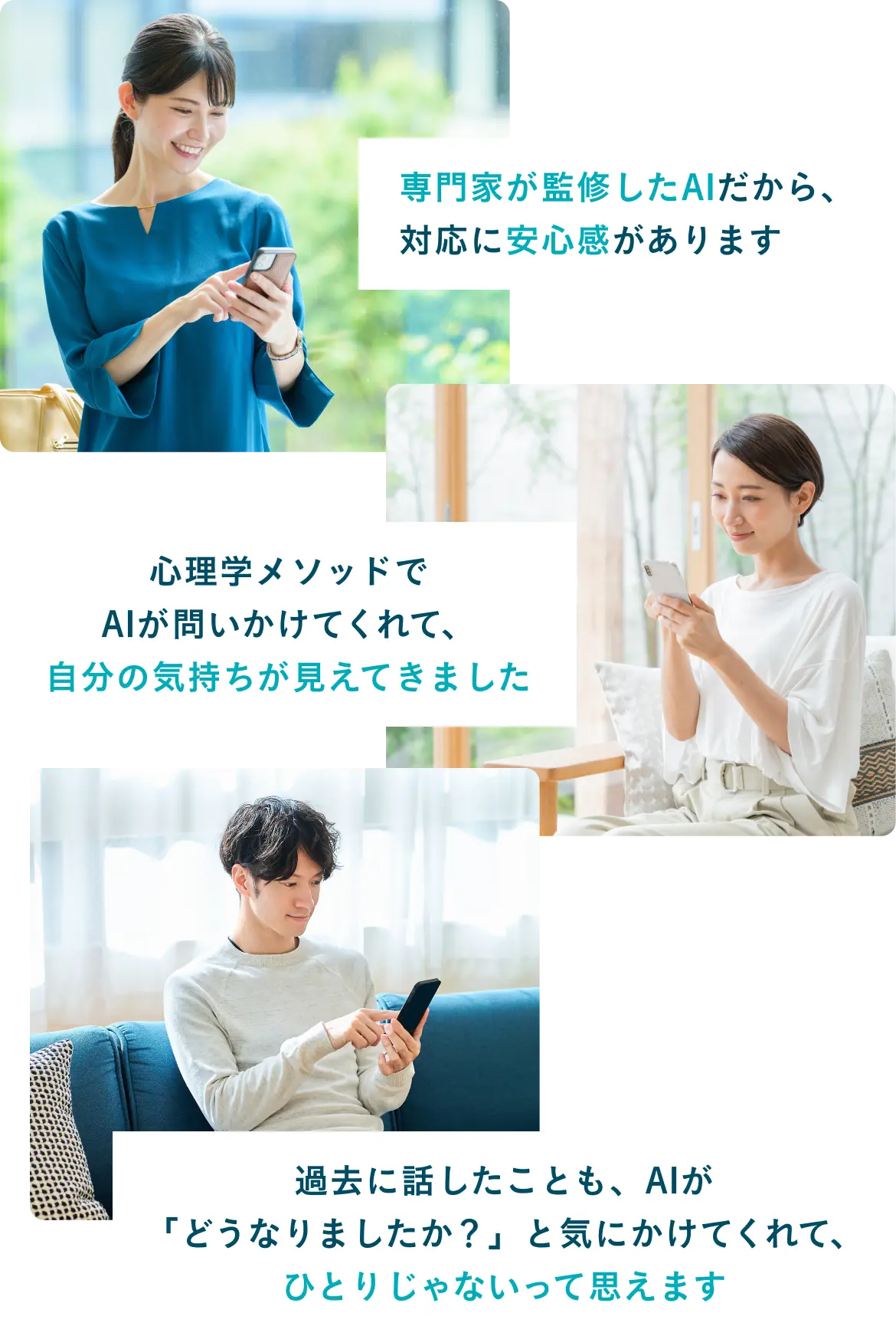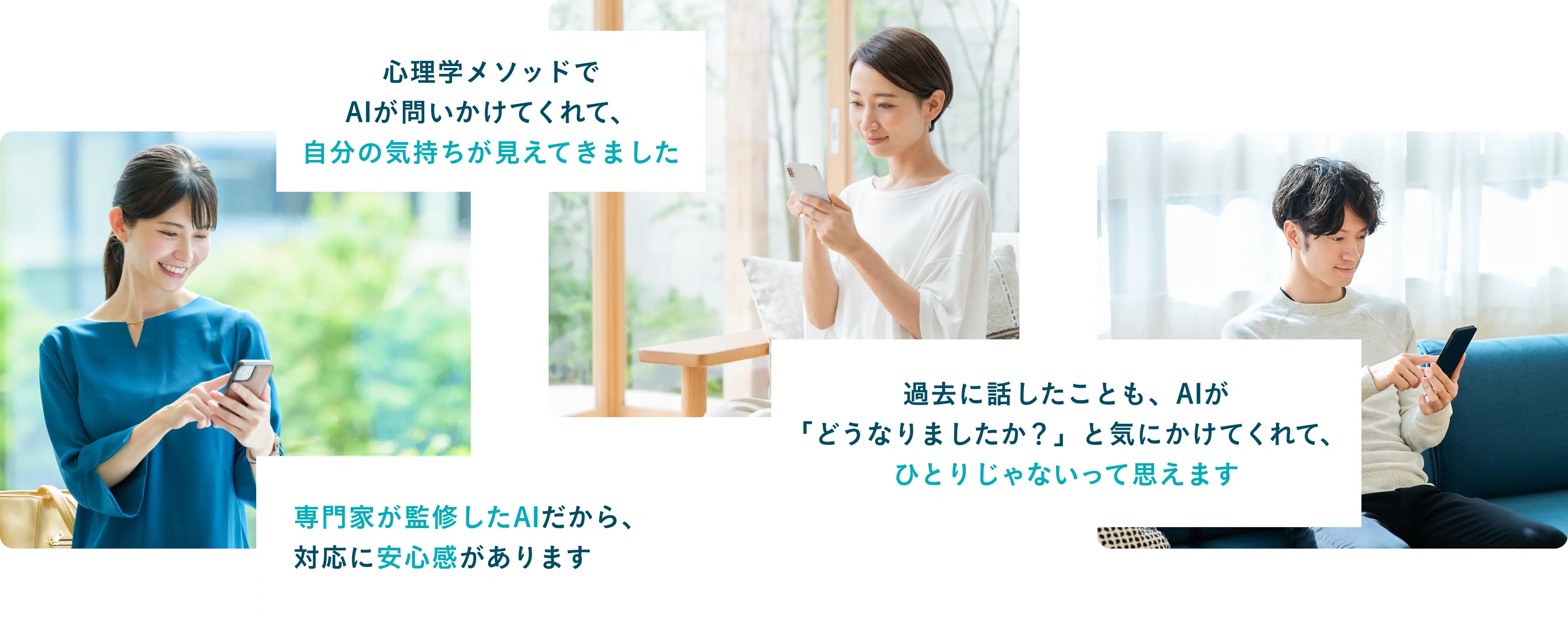 アプリは健康な人のメンタルヘルス維持のためにご利用いただくことを目的として作られています。あくまでセルフケアの用途でお使いいただくアプリのため、治療に代わるものではありません。治療中の疾患がある方は、主治医にご相談の上でご利用ください。