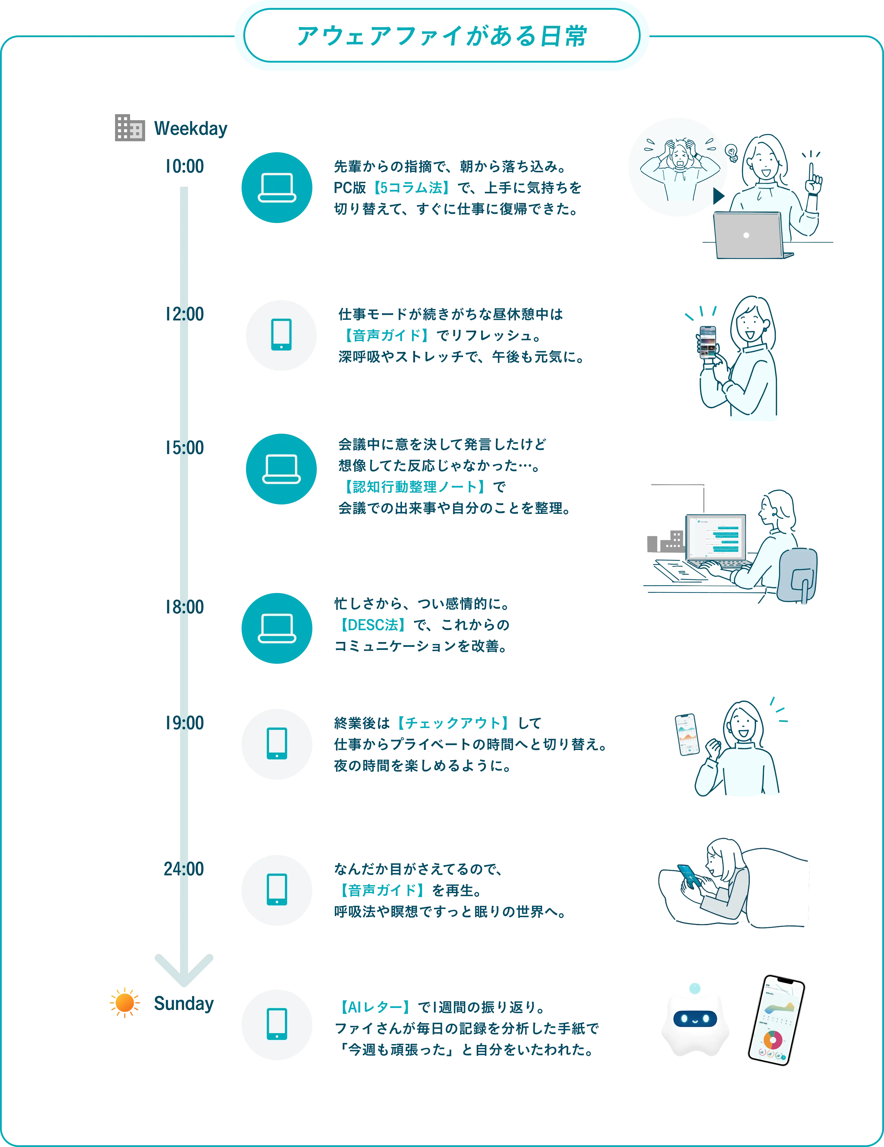 育休が明けて職場復帰した直後は、育児と仕事の両立に疲れて家庭内もめちゃくちゃになっていました。アプリで自分の気持ちを整えるようになってから、家庭内の雰囲気もよくなったと感じています。