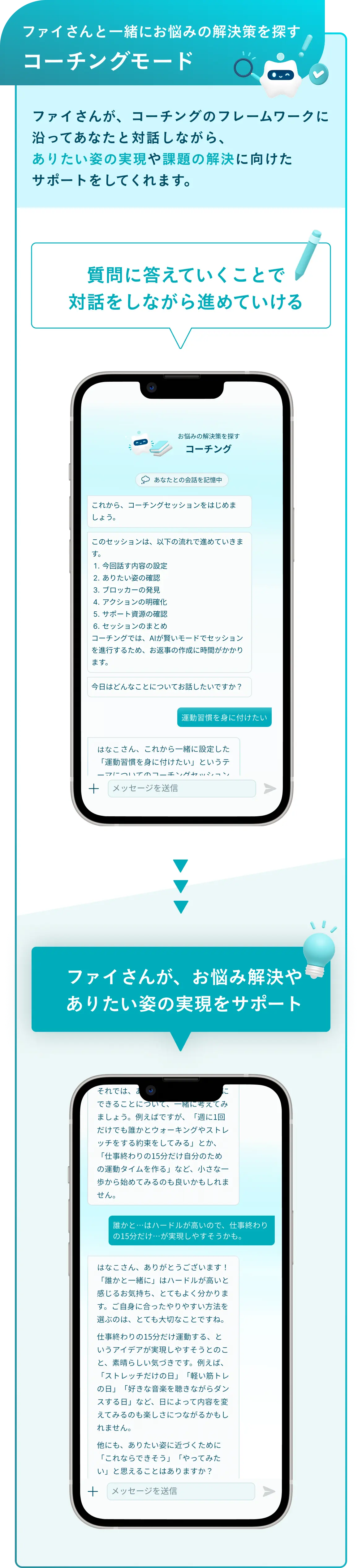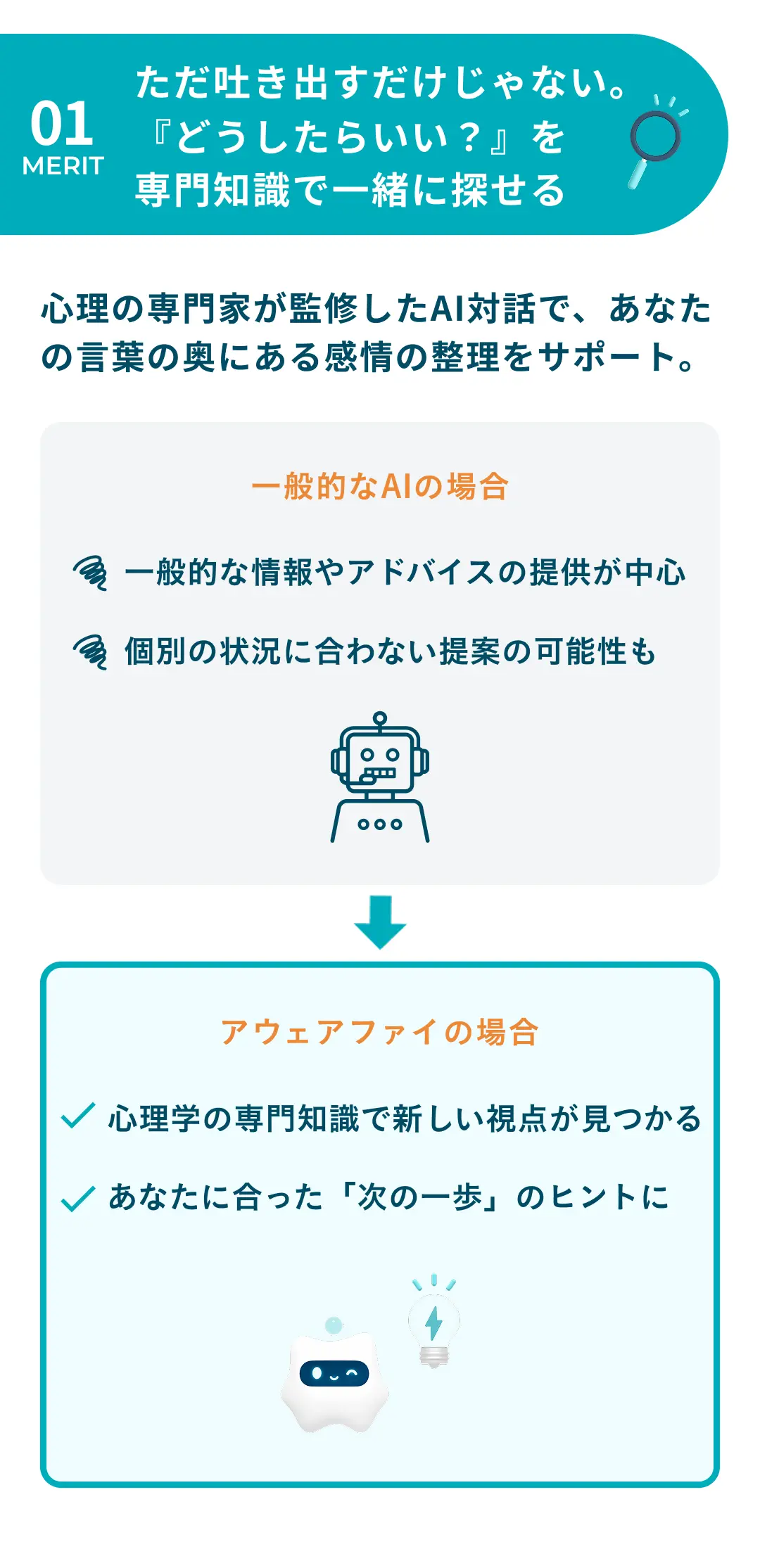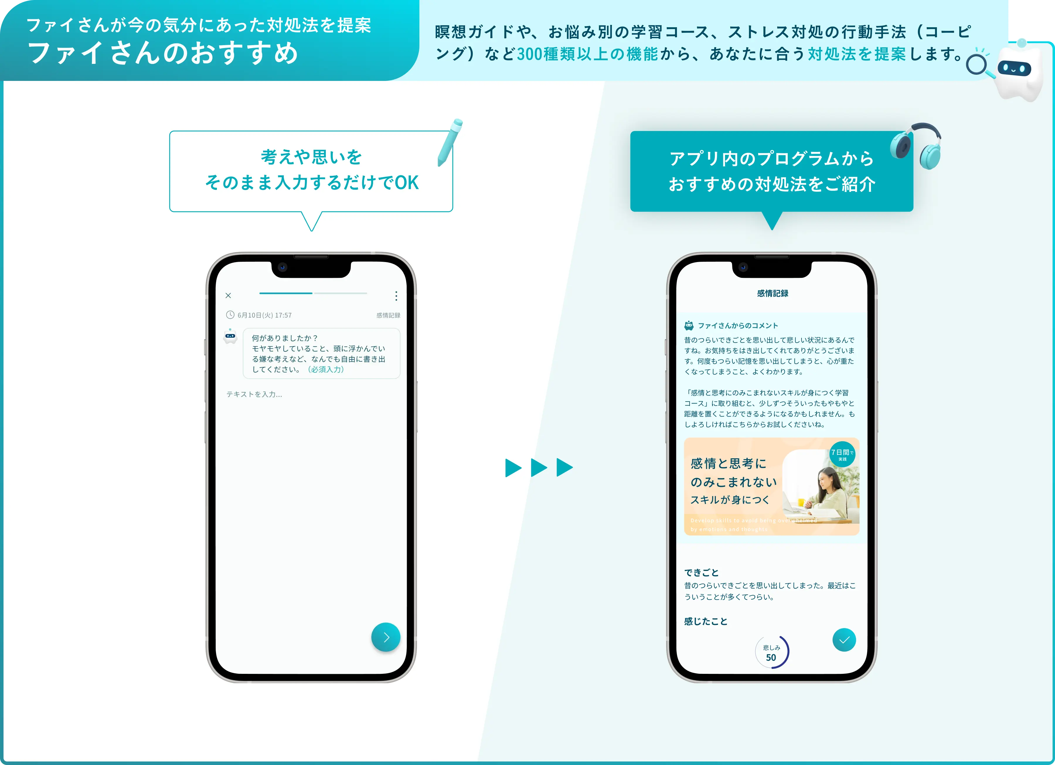 ファイさんになら、どんな気持ちを吐き出してもOK。イライラや愚痴をとことん受け止めてくれます。さらに、あなたのお話をふまえて、心のゆとりにつながる行動や考え方もアドバイス。いつでも頼れる心のパートナーとして、あなたの日々に寄り添います。